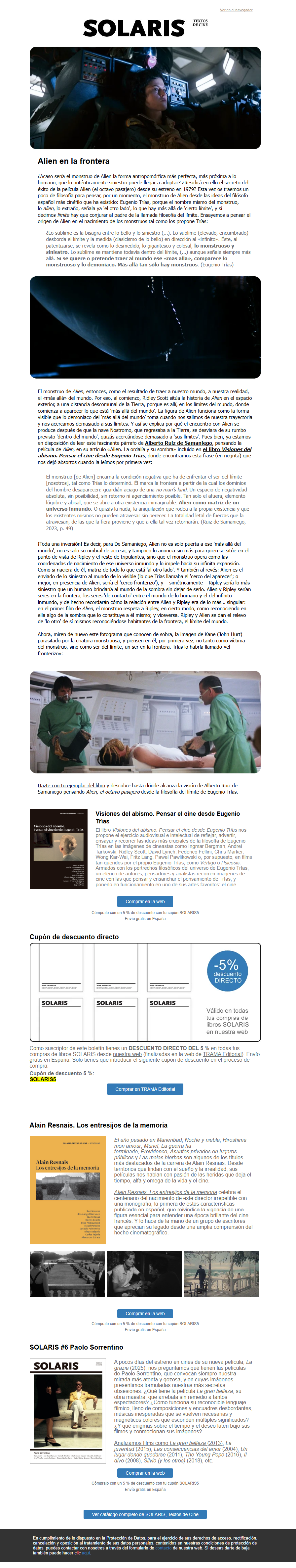 Newsletter de la editorial de libros de cine SOLARIS, editora de los libros SOLARIS y otras colecciones de cine de venta en librerías, que comparte con sus suscriptores artículos de cine y contenidos relacionados con los libros de cine.